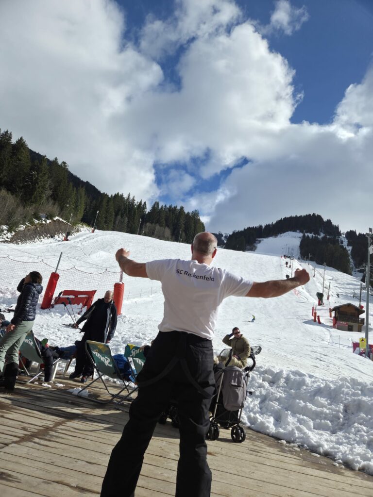Fit, nicht nur im Fußball: Oliver Loch, Co-Trainer der C-Jugend-Fußballer, packte für seinen Skiurlaub im französischen Chatel sein SCR-T-Shirt ein – und repräsentierte seinen Heimatverein stolz im Schnee. So wurde das Vereinswappen weit über die Grenzen des Münsterlandes hinaus getragen.