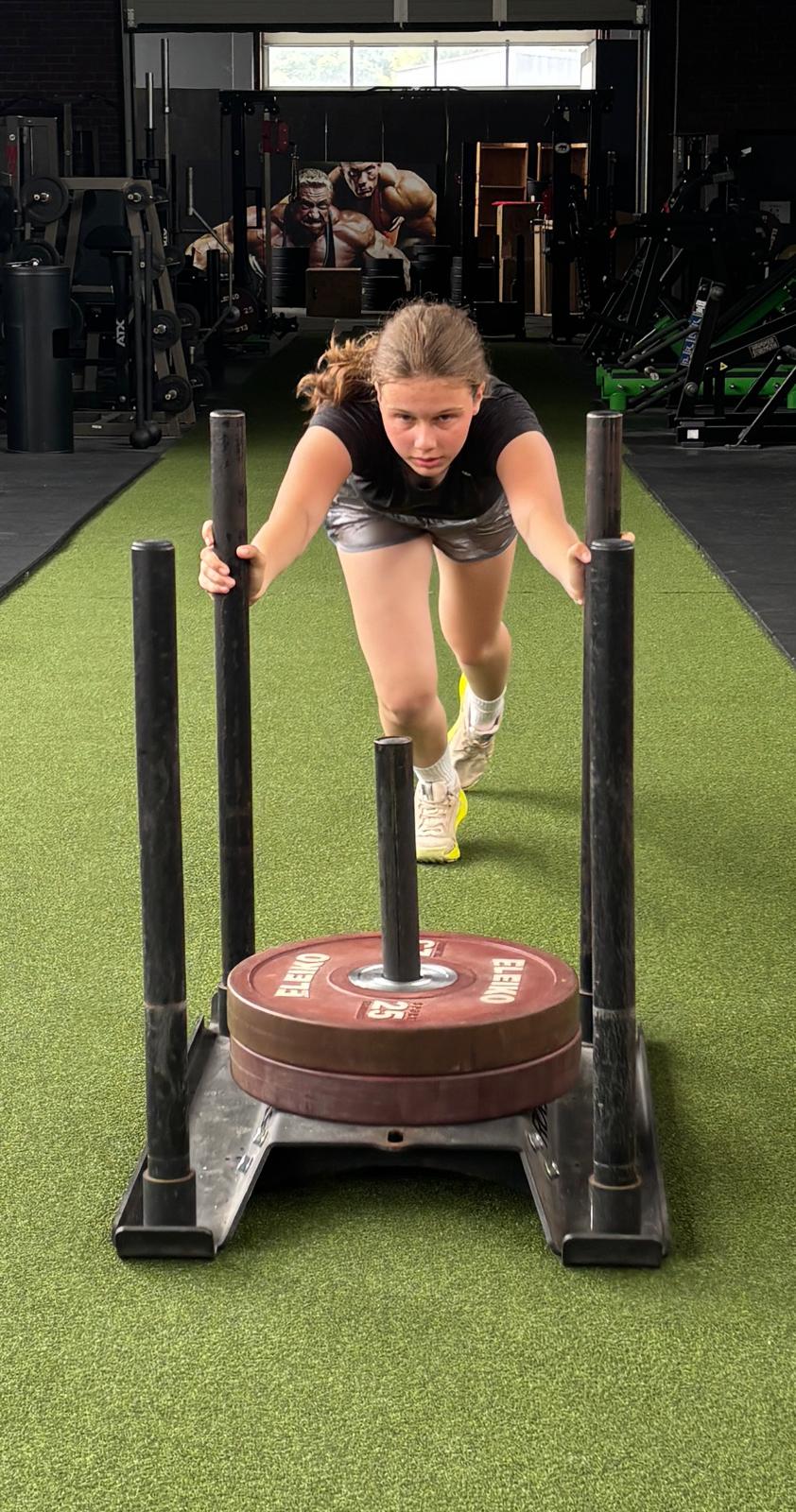 Die jungen Athleten mussten an insgesamt acht Stationen ihre Fähigkeiten unter Beweis stellen: 600 Meter SkiErg, Schlittenschieben (70 Kilo), Schlittenziehen (50 Kilo), 40 Meter Burpee-Broad-Jumps, 500 Meter Rudern, 100 Meter Farmer-Carry mit zwei Mal Zwölf-Kilo-Kettlebells, Lunges mit 7,5-Kilo-Sandsack, 50 Wall-Balls mit einem Drei-Kilo-Ball. Zwischen den Stationen mussten die Teilnehmer jeweils 300 Meter laufen. Eva nahm die Herausforderung ernst und hatte sich für den Wettkampf gründlich vorbereitet. Außerdem brachte sie bereits Wettkampferfahrungen aus Jahren davor mit – unter anderem im Extremhindernislauf Spartan Race in Zandvoort und in Palma de Mallorca, bei Schwimmchallenges und auf der Zehn-Kilometer-Strecke beim Teekottenlauf.