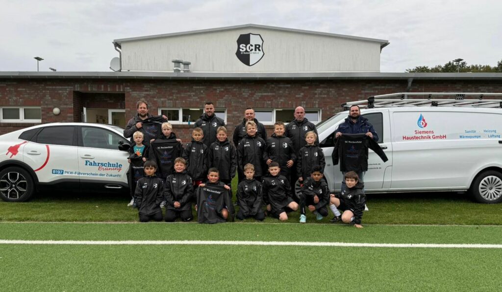 Die F1-Jugend des SC Reckenfeld freut sich über neue Allwetterjacken. Ein herzliches Dankeschön geht an die Siemens Haustechnik GmbH aus Reckenfeld sowie an die Fahrschule Brüning aus Emsdetten, die unserer Mannschaft diese tollen Jacken durch ihr freiwilliges Sponsoring ermöglicht haben.